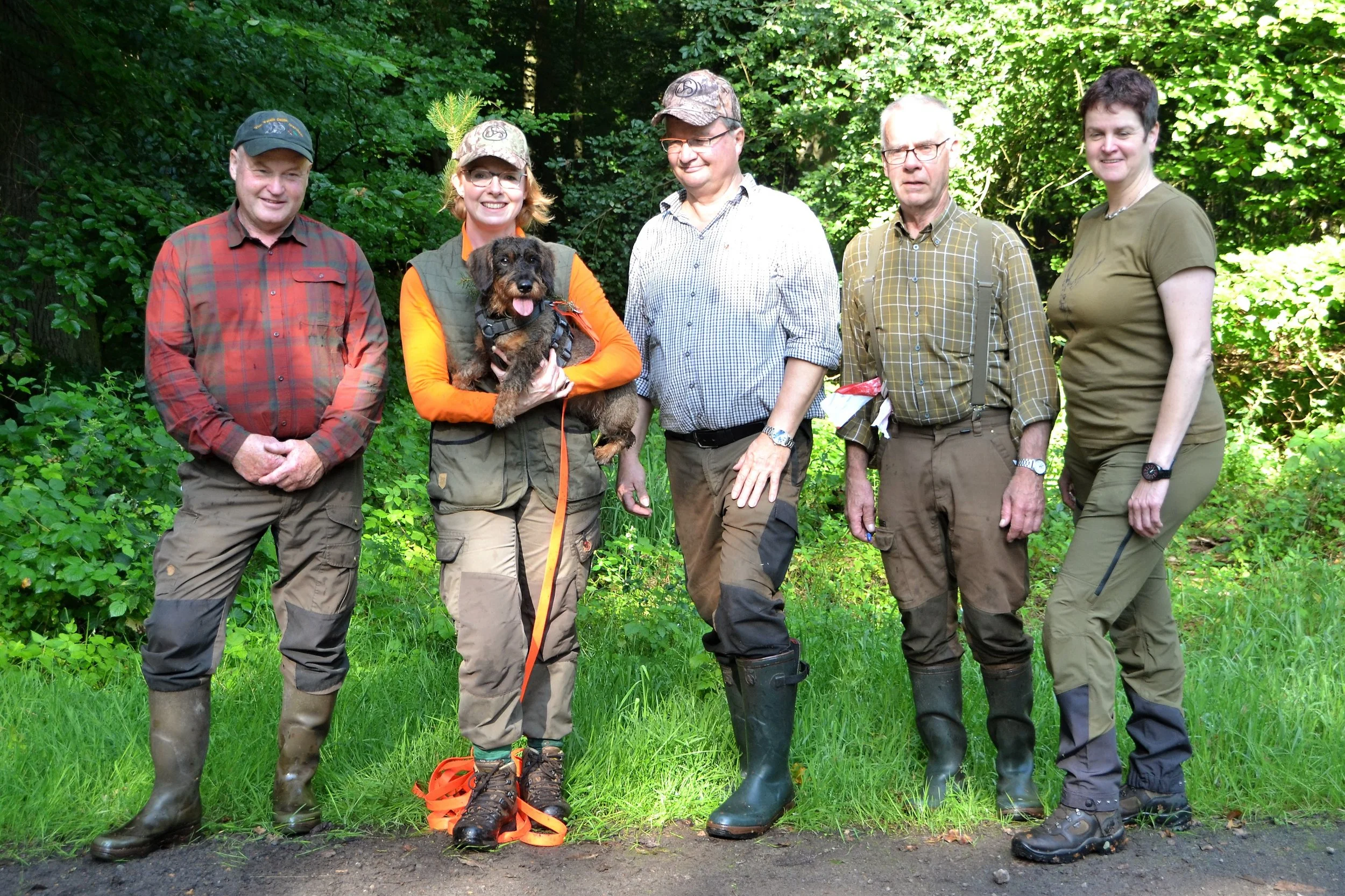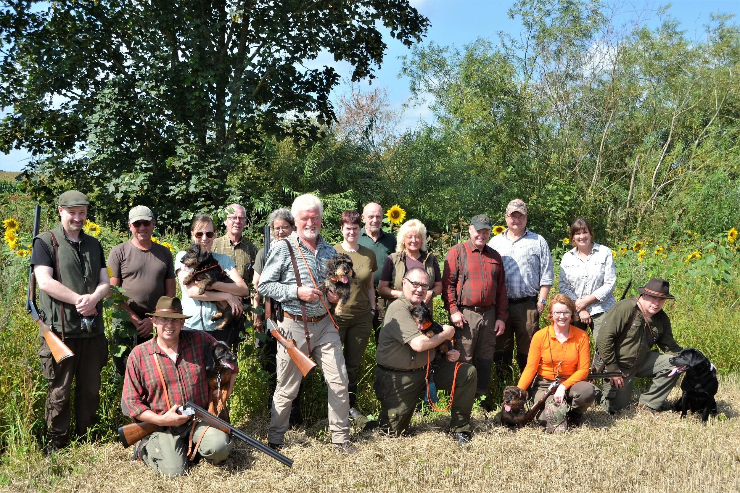 Prüfungsteilnehmer, Verbandsrichter und Helfer unserer Brauchbarkeitsprüfung für Nachsuchenhunde am 20. August 2023