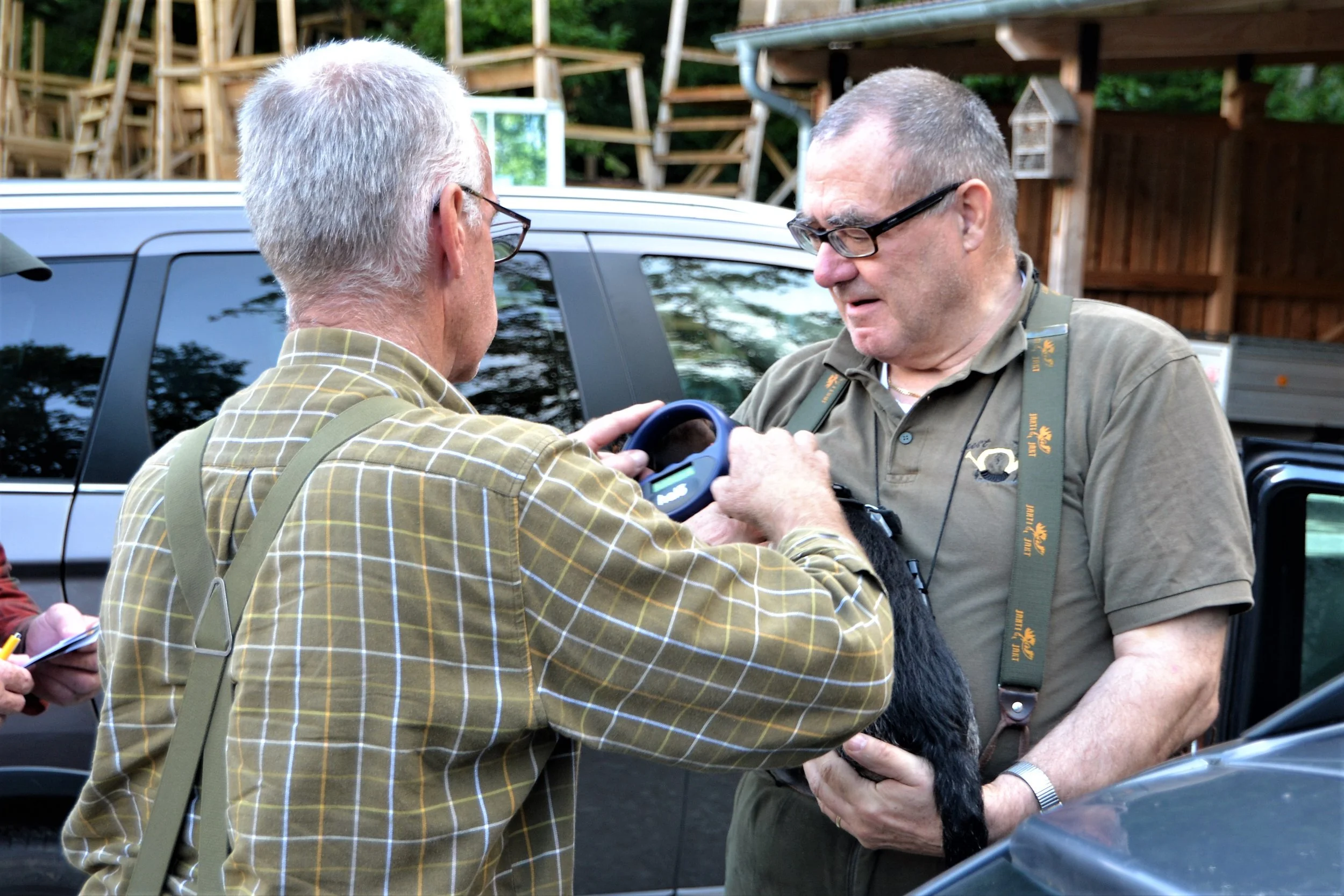 Insgesamt sieben Gespanne hatten sich zur Durchführung der Brauchbarkeitsprüfung für Nachsuchenhunde am Sonntag, dem 20. August 2023, angemeldet. Ein Gespann musste sich leider in Folge einer Erkrankung des Hundes kurzfristig wieder abmelden.