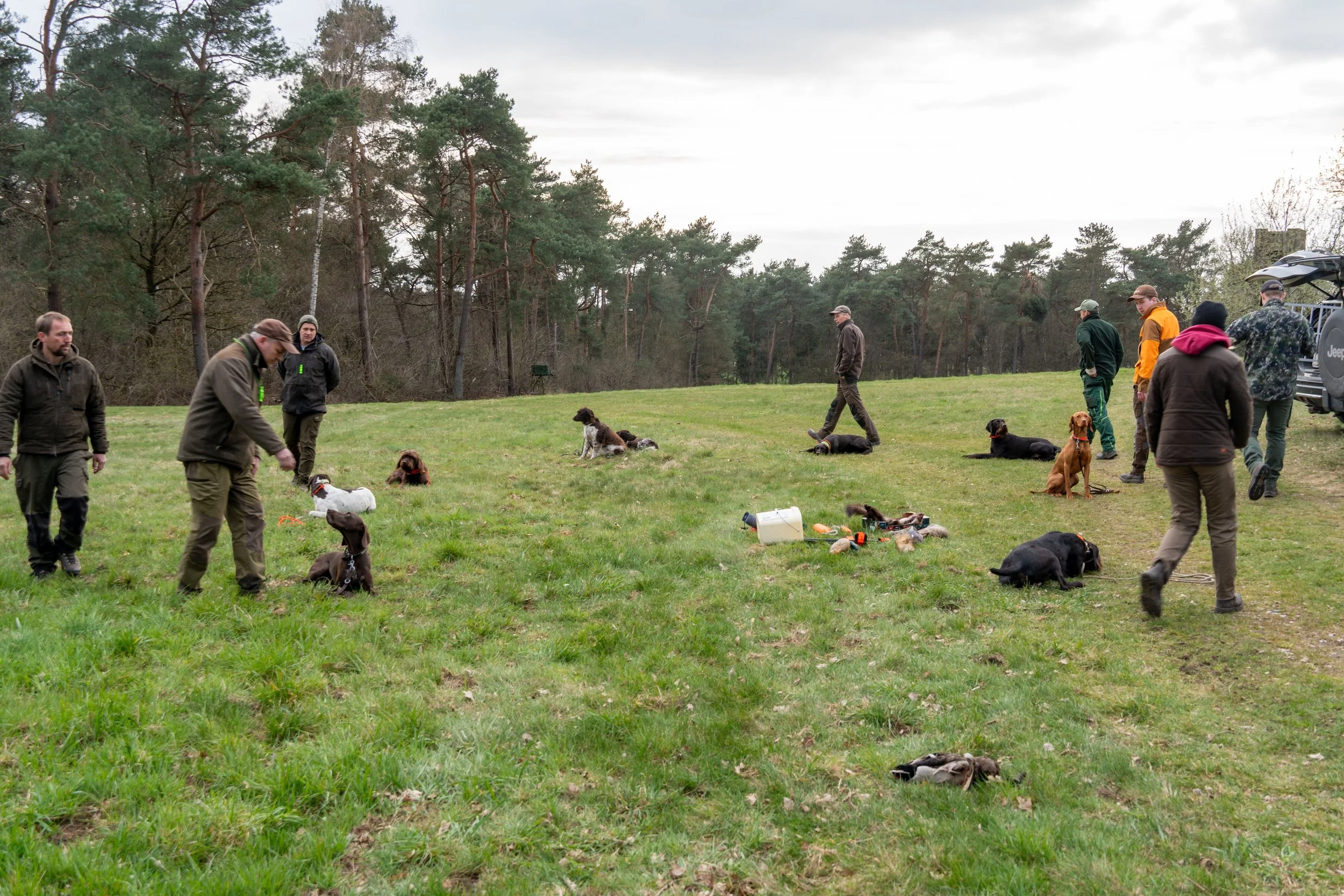 Neben der praktischen Arbeit bietet der Freitag auch immer reichlich Gelegenheit zum Austausch. Erfahrene Hundeführer geben Tipps, Neulinge stellen Fragen, und zwischendurch bleibt Zeit für Gespräche über Ausbildung, Zucht und jagdliche Praxis.
