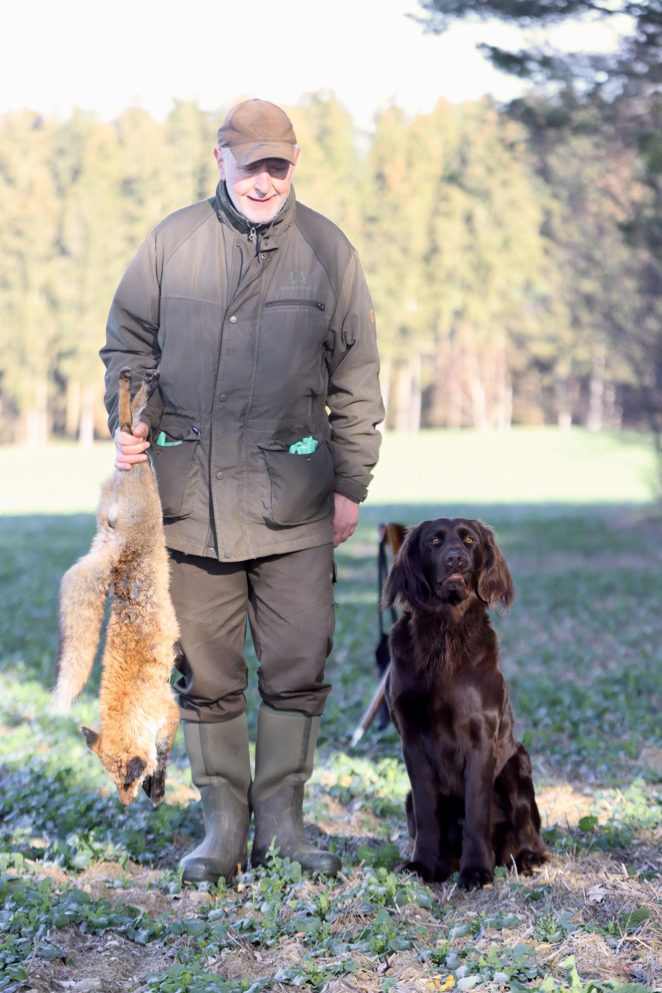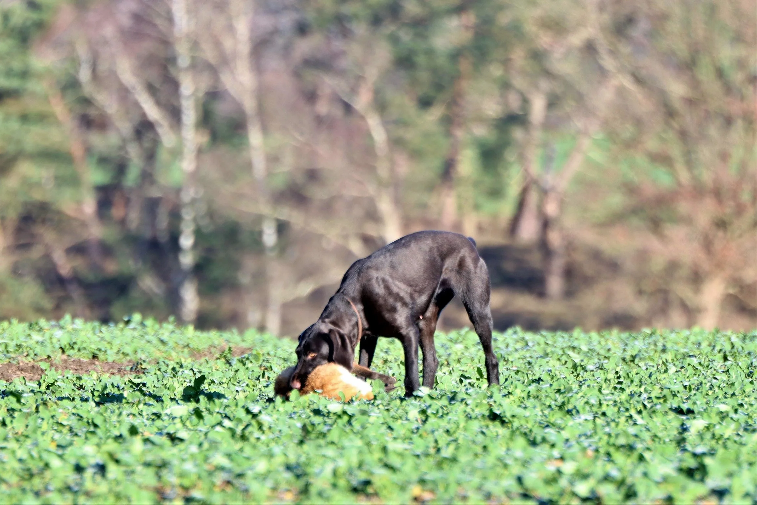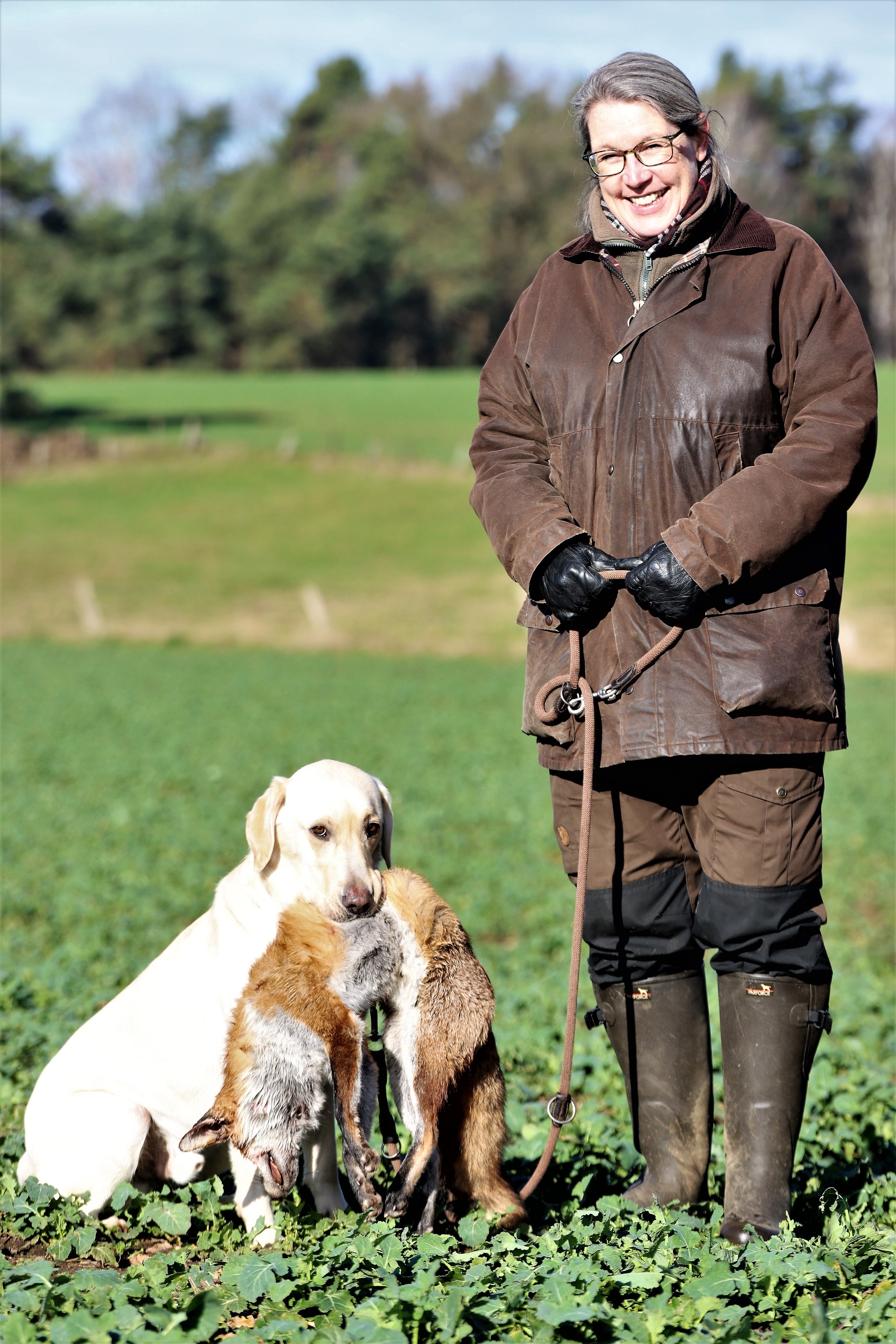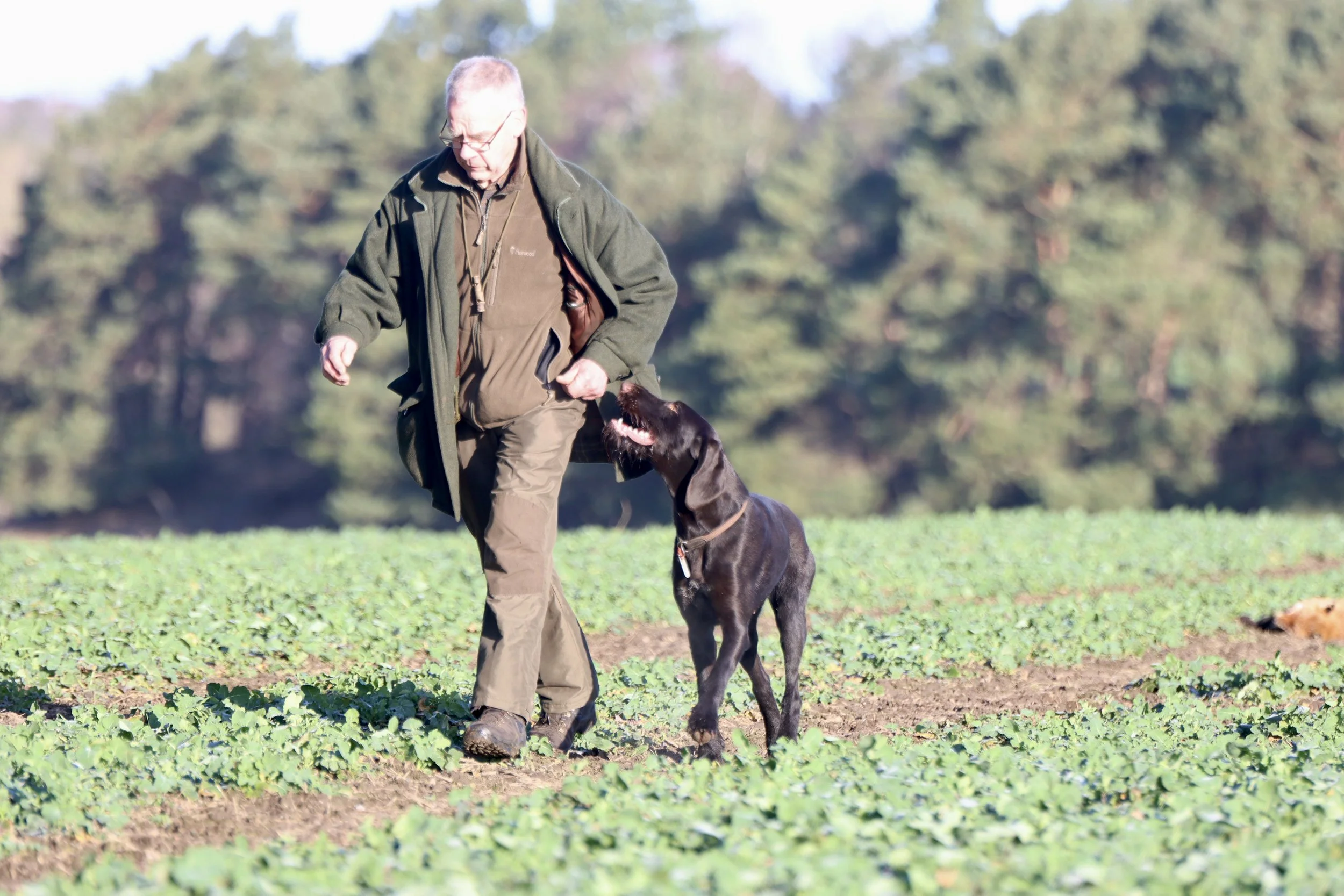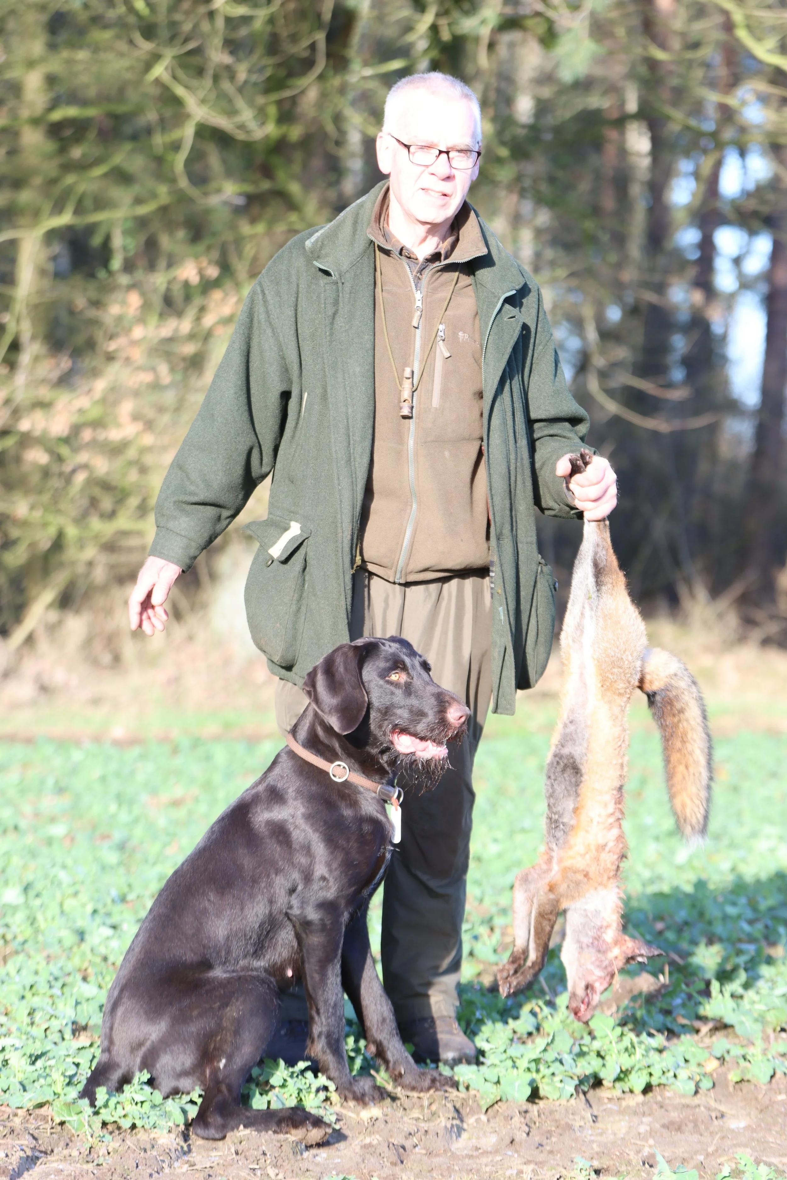 Nur etwas länger als eine Minute brauchte der Labrador-Retriever-Rüde "Femba´s Run to you Paul", um nach seinem Schnallen einen kapitalen Fuchs im tiefen Bestand zu finden und seinem Frauchen, Karen Sommerfeld-Heck, in bester Manier heranzutragen. Alle übrigen erfolgreich geprüften Hunde brauchten für diese Leistung zwischen zwei und zwanzig Minuten, wobei die Deutsch-Drahthaar-Hündin "Eibe von der Elbe" ihren Besitzer und Führer Gerd Bohmbach durch eine exzellente Sonderleistung, sie fand und apportierte schließlich gleich zwei Füchse, ganz schön in's schwitzen brachte.