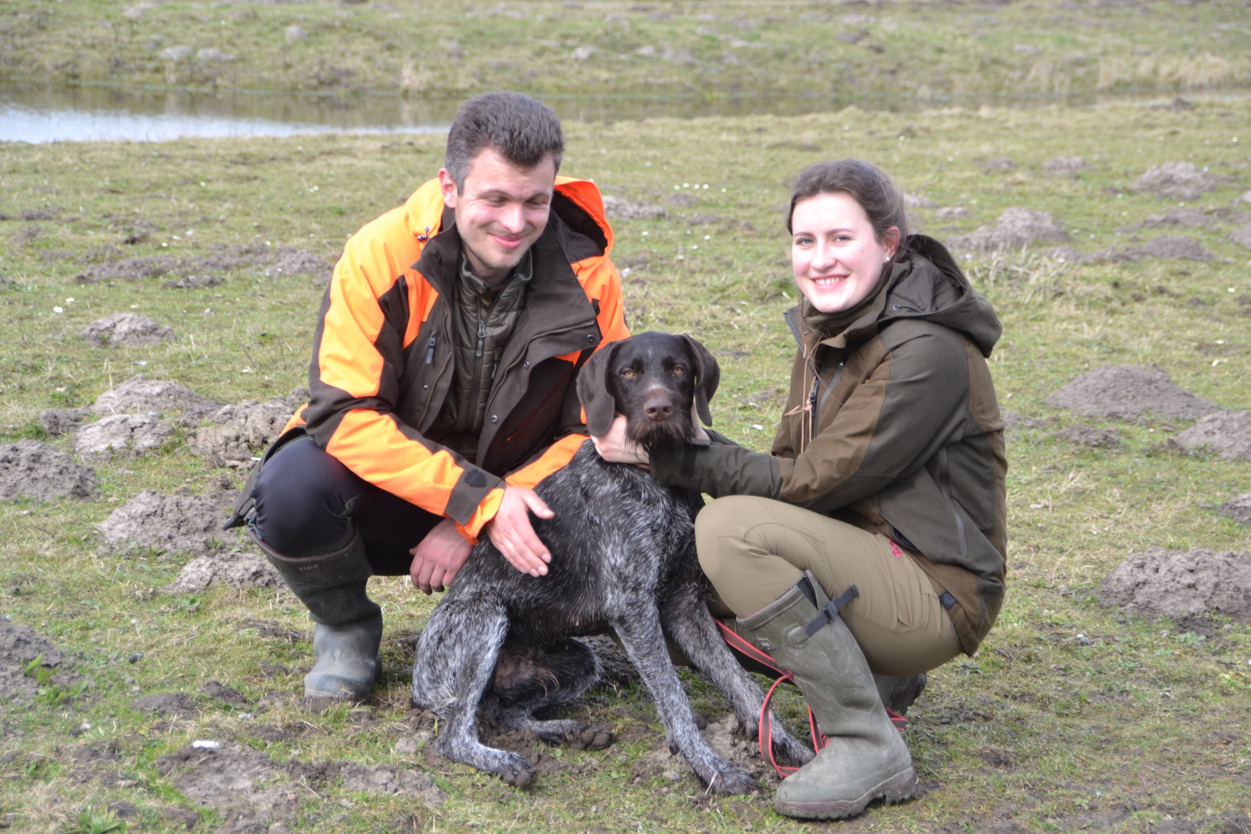 Suchensieger unserer VJP (2) wurde unser Vorsitzender Gerd Bohmbach, der mit seiner Deutsch-Drahthaar-Hündin "Eibe von der Elbe" im Revier Freiburg die Richtergruppe unter Obmann Dr. Gerd Cappell mit hervorragenden Leistungen (79 Pkt, sil/ AH) überzeugen konnte (Bild). Ihm folgte auf Platz zwei dieser Prüfung Connor Reece Roberts mit seiner DD-Hündin "Laika vom Aitrachtal" (73 Pkt, ?) unter Richterobmann Frank Penner im Revier Oederquart III. Auf Platz drei qualifizierte sich Ralf Hensen mit seinem DD-Rüden "Brösel von den Loomster Wolfskuhlen" (71 Pkt, sil).