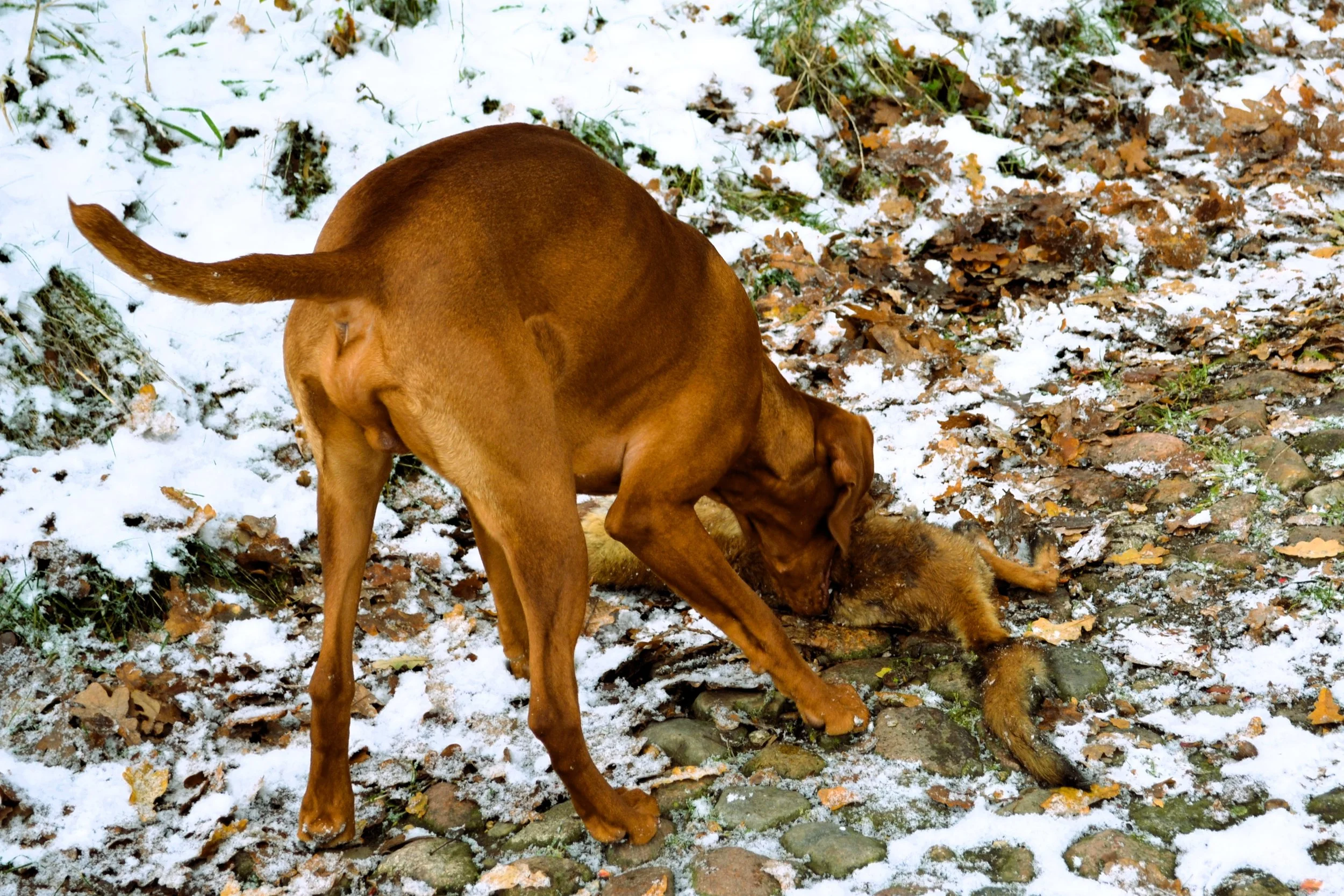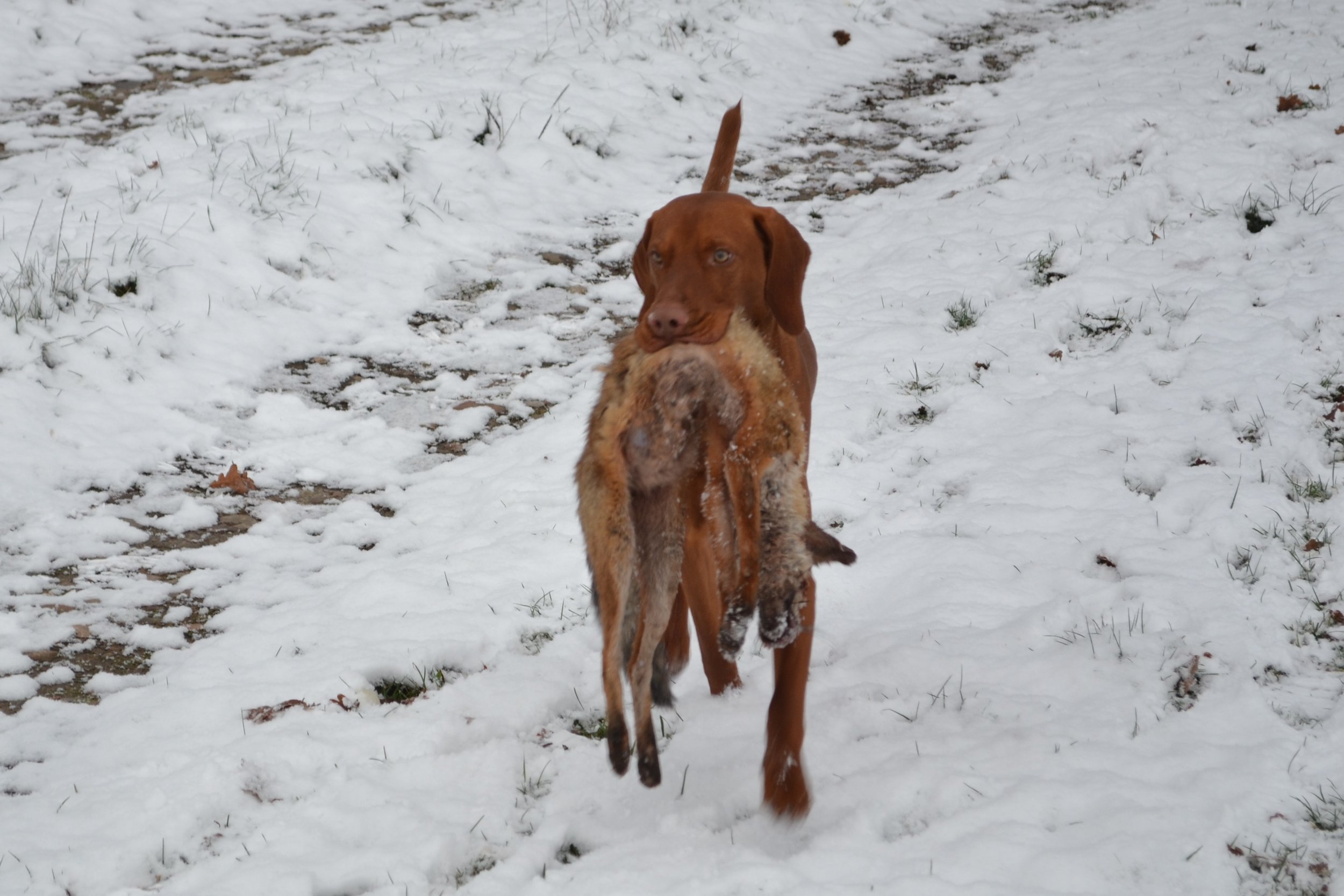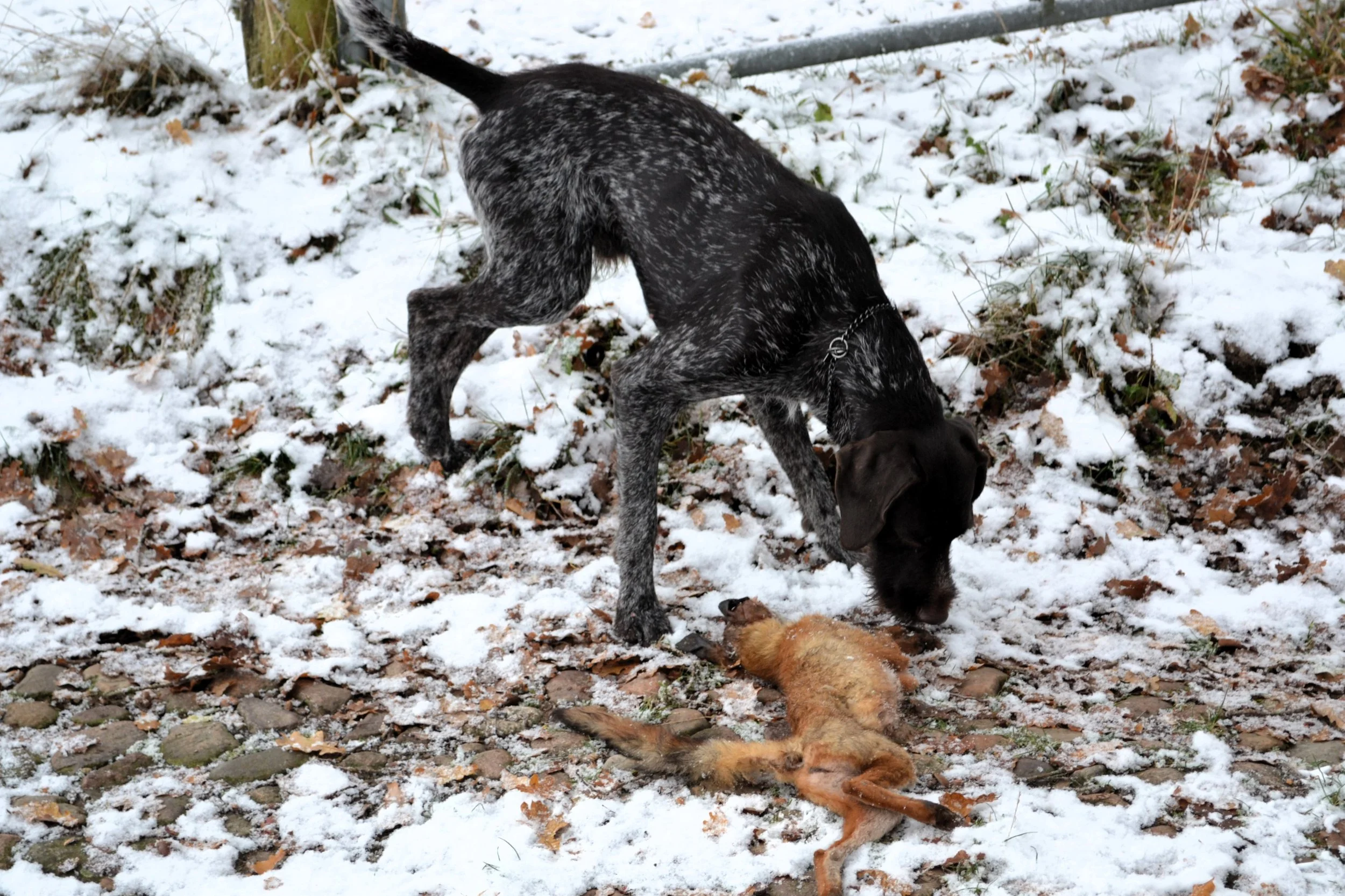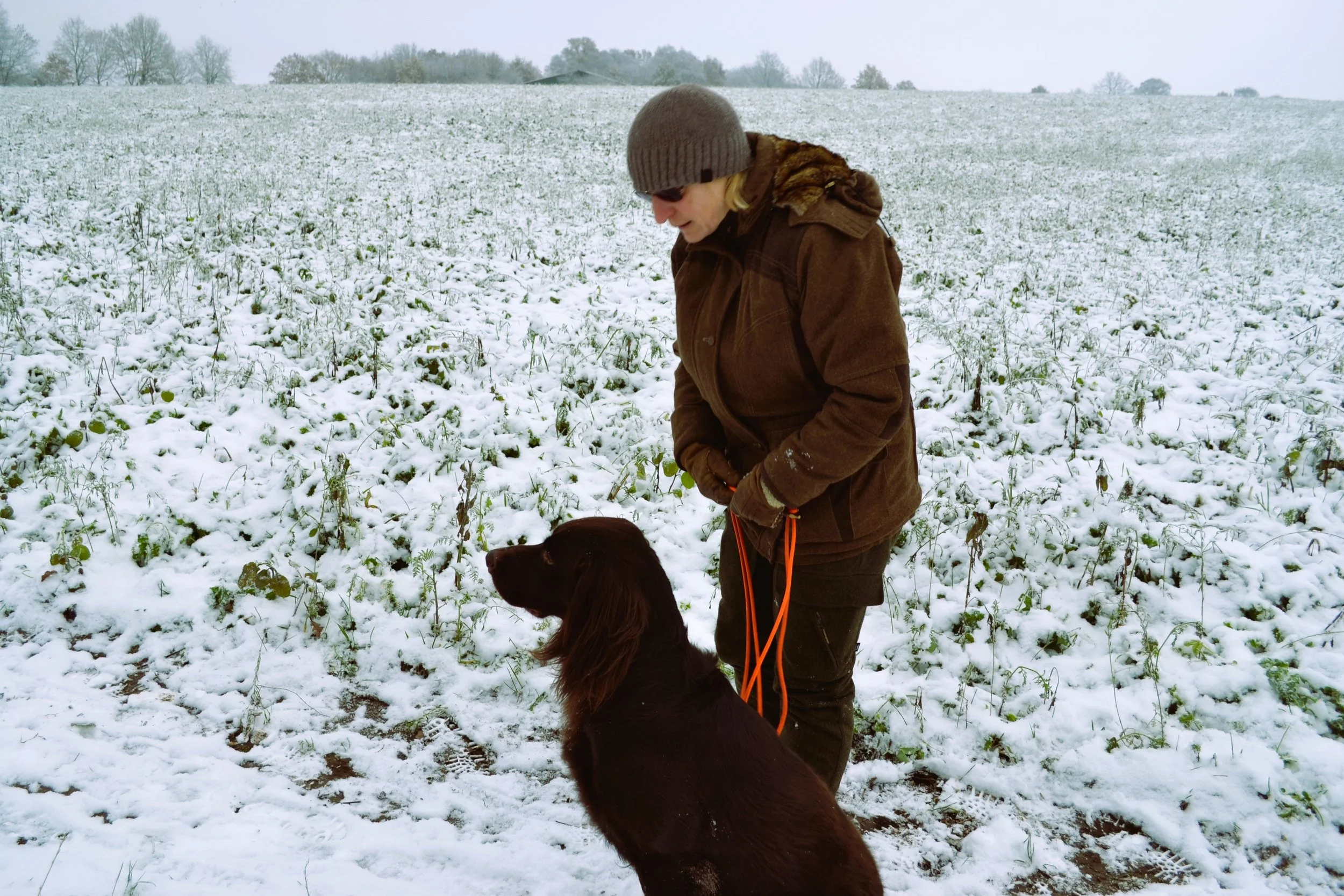 Bei herrlichem Winterwetter vermittelte Gerd den drei zu dieser Ausbildung erschienenen Gespannen zunächst die in der Prüfungsordnung enthaltenen Bestimmungen. Danach ging er auf die praktischen Abläufe der Prüfung ein und erklärte anschließend in der Praxis, wie man den jungen Jagdgebrauchshund zum zuverlässigen Apporteur ausbilden kann.